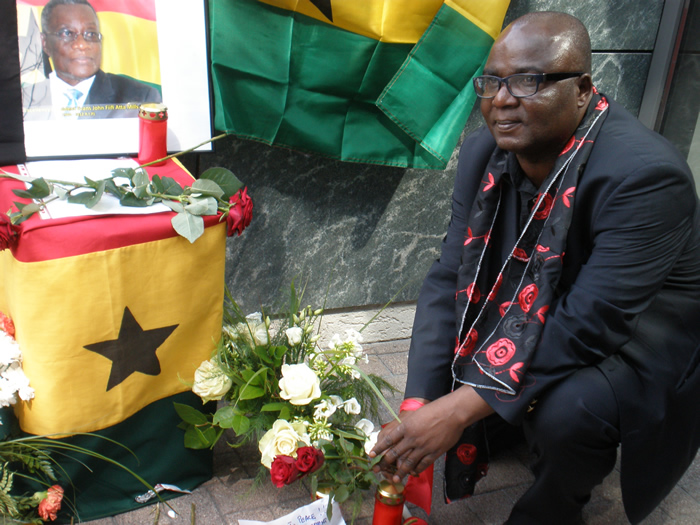 Ghanaians in and around Hamburg city of Germany in collaboration with Ghana Union – Hamburg and the ruling Party (NDC) and other various ethnic union representatives thronged to the forecourt of Ghana consulate in Hamburg amidst in bereaved red and Black to light candles and to present condolence Flowers to express their sympathy to the late President Mills.