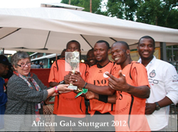 The Nigeria national team in Stuttgart once again won the 18th African football Gala at the Mercedes sport Stadium in Stuttgart by beating their Burkina Faso counterparts by five goals to nil. Organised by the Africa Union Stuttgart ev, this year´s event was participated by ten African national teams, and above all, the Pioneers who had the vision thirty years ago to form the African Union here in Stuttgart were conferred with Merits of Excellence Award.