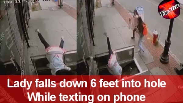 It seems like she was instantly distracted by her phone. Authorities say the 67-year-old woman appeared to be texting when she tripped over an open access door and plunged six feet into the basement of a window pane store.Two girls who were walking in the opposite direction seemed extremely surprised and scared as the incident occured right in their face.