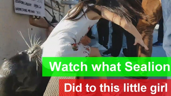 The incident occured at the Steveston Fisherman's Wharf, Richmond B.C. Canada. Luckily the little girl was rescued by her family member and bystanders. And Nobody was injured including the sea lion.