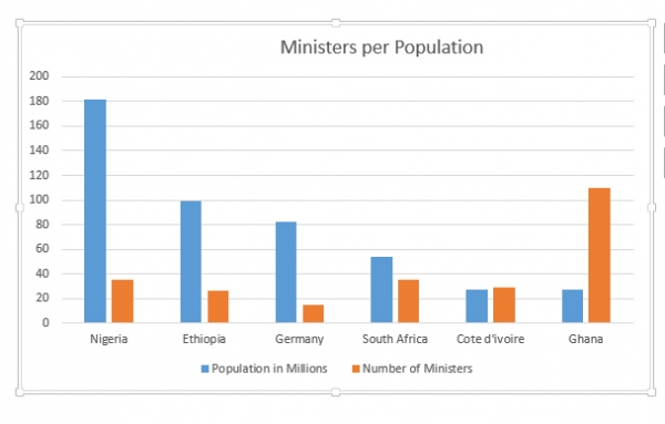 Ministries in our part of the world are very expensive to run. The state is required to provide freebies to all government officials. These are as follows: free electricity, free water, free medical care, free petrol, free drivers, and free police escort, free garden boy, free cook, and free houseboy, free cars for all ministers. These are serious drain on a Nations' finances. A country can only develop when it uses its available resources efficiently. It is about time civic society condemn the new trend of big and bigger size on government where most demanding positions are awarded to people not based on competent and loyalty to nation but to supporters, friends and relatives.