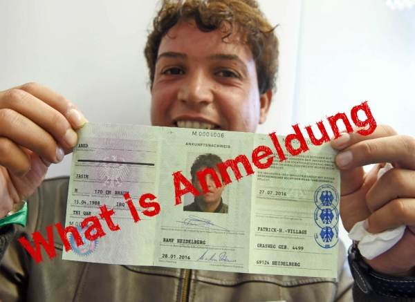 Anmeldung (which means "To Register") is simply the fact of registering yourself as living at a specific address in Germany.