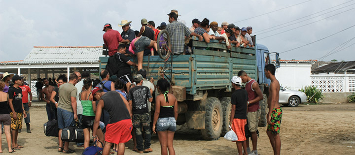 Ciudad Hidalgo, Mexico: Central American refugees boarding a truck on their way north to the US border.