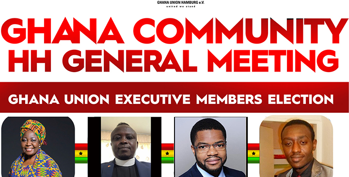 The Community in Hamburg is conducting a general election on Saturday, the 30th of October 2021 to elect/endorse new executive members for the Ghana Union. The event is taking place at “International Christengemeinde” (Pastor Wulff‘s Church) Überseering 21, Plz 22297 Hamburg. It is strictly a two hours program. 17.00 – 19-.00 Hours.