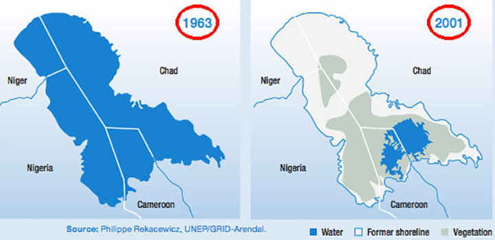 If you want to see how climate change can wreak havoc on lives, take a look at Lake Chad itself. The lake, which straddles the four countries, has shrunk by 90 per cent since the 1960s, in part due to climate change. The entire region is getting drier. Rains are irregular and farmers can no longer depend on them. This has given rise to cyclical malnutrition.