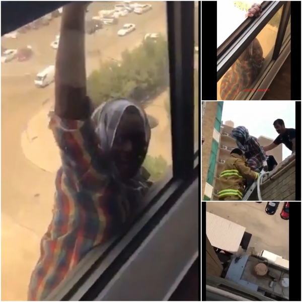 Shocking footage emerged showing the domestic worker clinging on to a window frame by her fingertips and howling in terror.